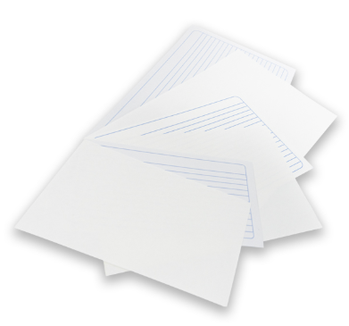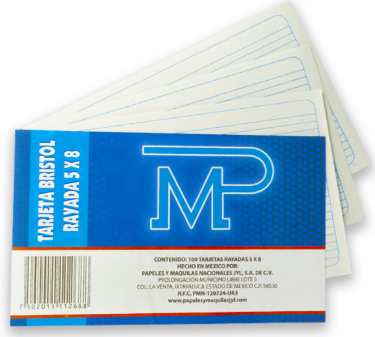 Pieza de cartulina rayada cortada en rectángulo, utilizada para escribir o imprimir algo.